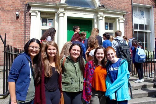 Success! After a red-eye flight that was somehow both too quick for proper sleep and too long for comfort, Team Writing in Ireland arrived safely to gray skies and the friendly face of our Early Leader, Patrick. We set up camp at our hostel, enjoyed a soup and sandwich buffet at our local cafe, and held our community-building orientation session at the historic Irish Writers Centre on Parnell Square.